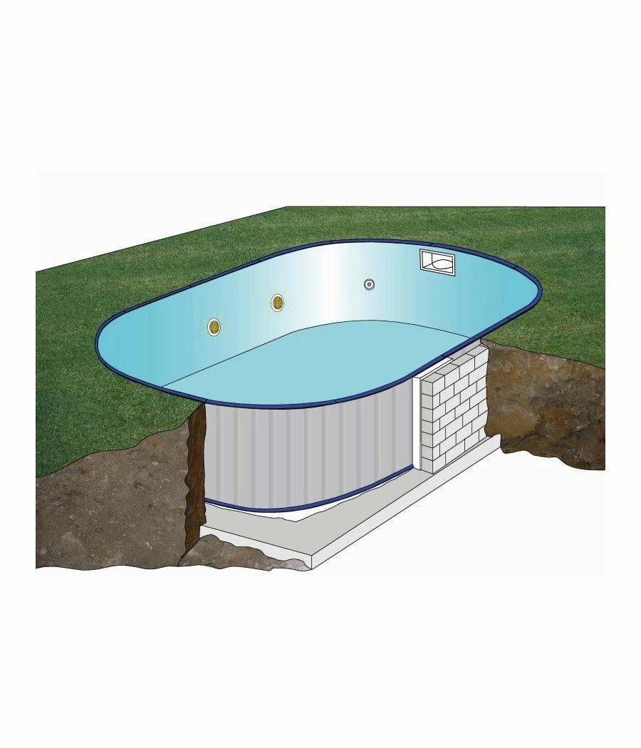 – Piscine enterrée ovale 7.00m x 3.20m, hauteur 1.50m, volume 27.47 m3